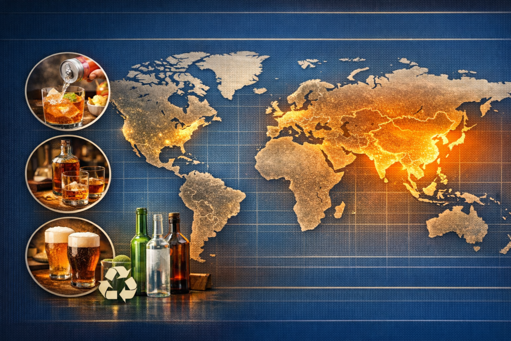 The economic landscape for the alcoholic beverage packaging sector is defined by steady growth tempered by extreme operational volatility. Current market analysis projects the global glass bottles and containers market to expand from $84.21 million tonnes in 2025 to $103.06 million tonnes by 2031, representing a CAGR of 3.42%. In terms of value, the retail glass packaging market is expected to reach USD $77 billion by 2032, driven by a 5.3% CAGR. The alcoholic beverage segment remains the primary engine of this growth, commanding approximately 46% to 51% of the total glass container market share. However, the industry is grappling with record-high energy prices, particularly in the United Kingdom and Europe, where electricity price spikes in 2024 compelled manufacturers to idle production lines during peak tariffs. Furthermore, glass containers are approximately 25% more expensive to transport than plastic or aluminum alternatives due to their weight and fragility. This has led to a plateau in growth for economy lines, as major breweries increasingly trial lightweight rPET, which weighs nearly 90% less than glass. The response from the glass sector has been a rapid pivot toward “Rightweighting”—a responsible reduction in material use that directly offsets logistics costs and energy-related carbon emissions. Regionally, the Asia-Pacific dominates with a 36.37% market share, while China leads global growth with a 6.1% CAGR, driven by the urban shift toward premium craft spirits and a robust recycling ecosystem.